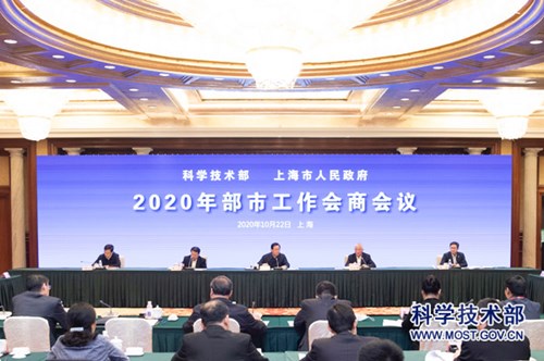 2020年10月22日,科技部、上海市人民政府在上海举行2020年部市工作会商会议。中央政治局委员、上海市委书记李强,科技部党组书记、部长王志刚出席会议并讲话。上海市委副书记、市长龚正主持会议。会上,上海市委副书记、市长龚正,科技部副部长李萌分别报告部市双方对推动本次会商事项的有关考虑和意见。上海市委常委、市委秘书长诸葛宇杰及市直部门主要负责同志,科技部副秘书长贺德方及有关司局负责同志出席会议。